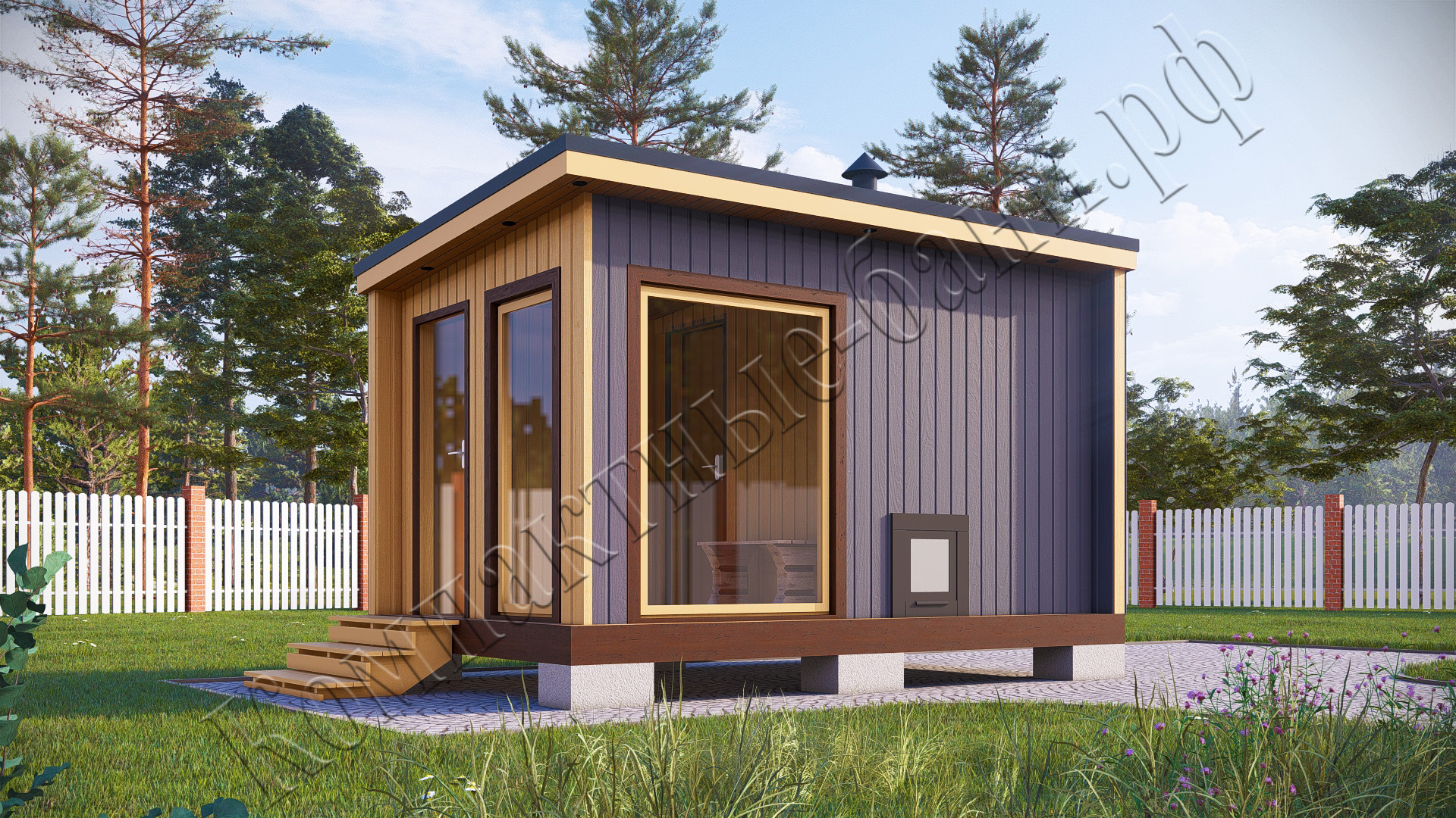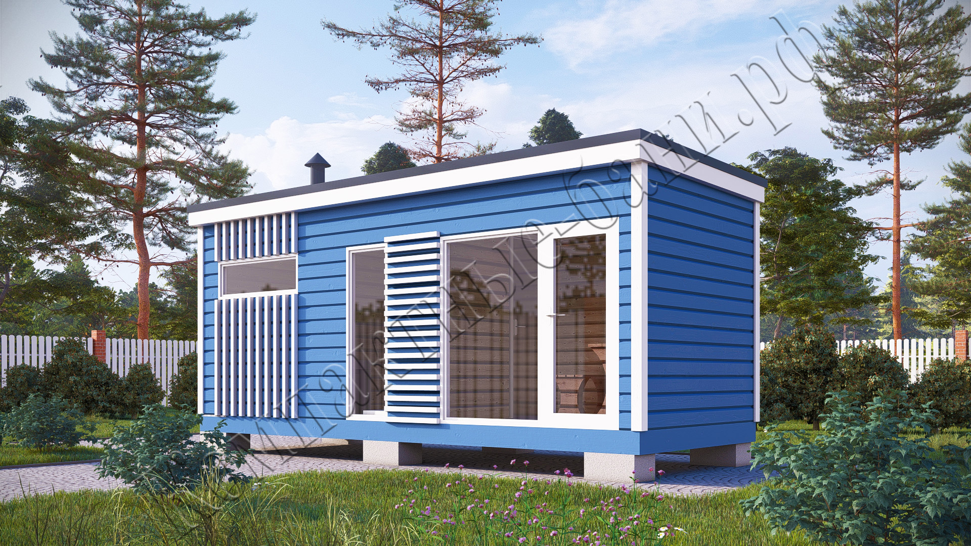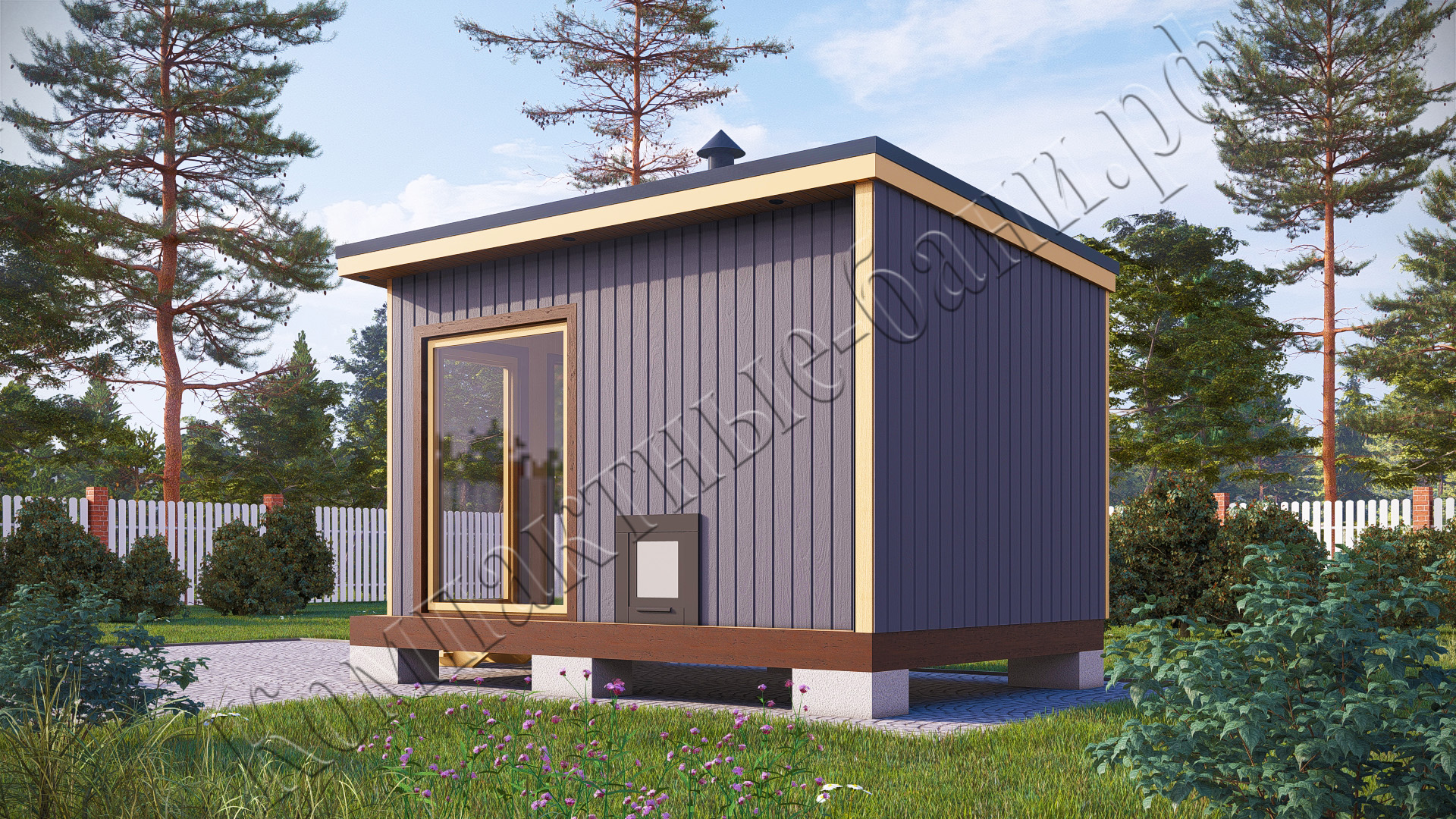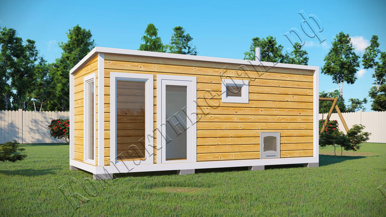 Мобильная баня состоит из перевозных модулей. В отличие от бани, построенной на бетонном фундаменте, мобильная баня по вашему желанию может быть перемещена в любое другое место
